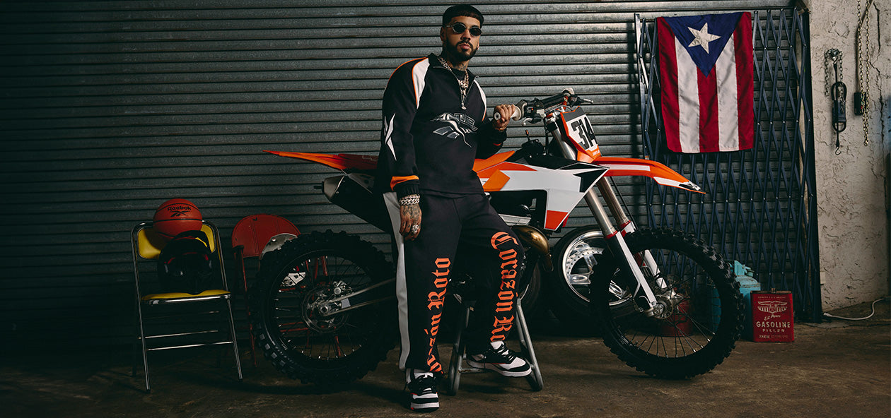 The Reebok x Anuel AA capsule brings Anuel's deep-rooted connection to sports and moto culture to life, blending street-smart resilience with an unapologetically rebellious spirit. This shoe reflects his journey, infused with raw emotion and fearless energy. The BB 4000 II Sneakers, an OG basketball icon, make their mark in this collection, adding a nod to Anuel's athletic inspiration. From the gritty textures to bold design elements and chrome detailing, this collection fuses the toughness of street culture with the high-octane power of moto aesthetics, capturing Anuel's trailblazing, unapologetic spirit. The shoes come in exclusive custom packaging, completing the celebration.